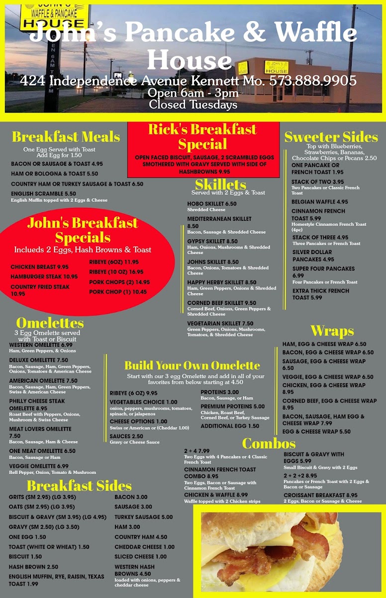 Blueberry Pancakes Cheesy Scrambled Eggs and Bacon